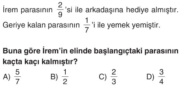6. Sınıf Gerçek Yaşam Problemleri (Kesirler) Test 6
