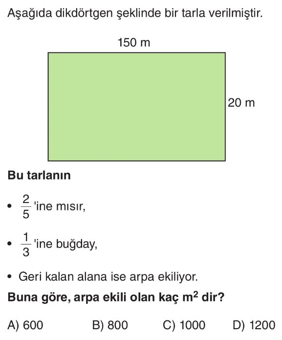 6. Sınıf Gerçek Yaşam Problemleri (Kesirler) Test 6