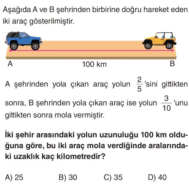6. Sınıf Gerçek Yaşam Problemleri (Kesirler) Test 7