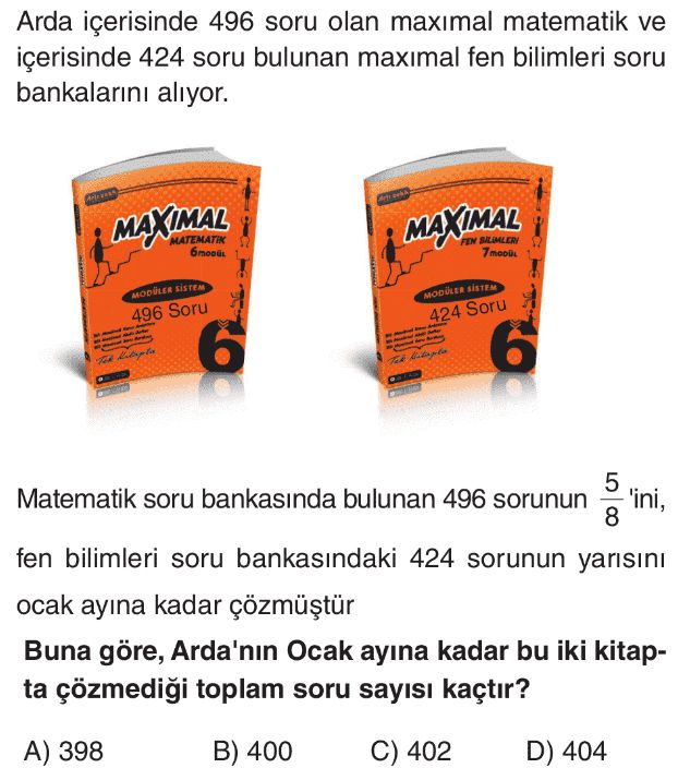 6. Sınıf Gerçek Yaşam Problemleri (Kesirler) Test 8