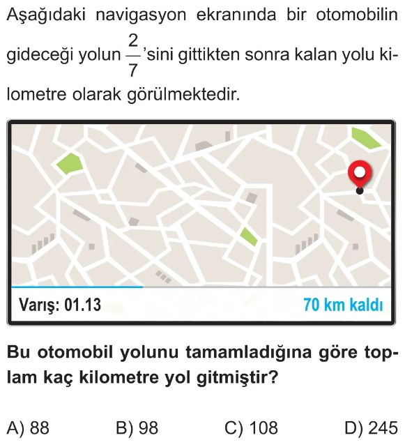 6. Sınıf Gerçek Yaşam Problemleri (Kesirler) Test 8