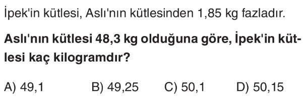 6. Sınıf Ondalık Gösterimlerde Toplama ve Çıkarma İşlemi Test 1