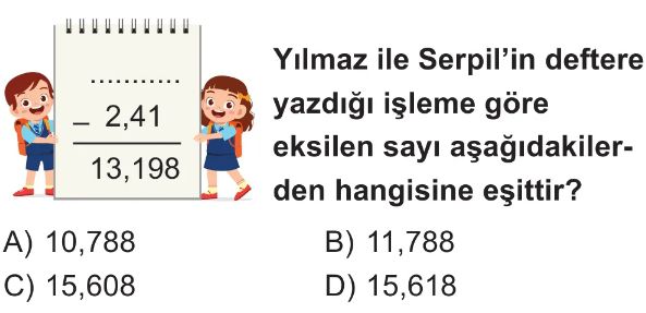6. Sınıf Ondalık Gösterimlerde Toplama ve Çıkarma İşlemi Test 3