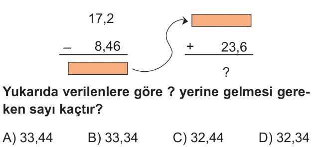 6. Sınıf Ondalık Gösterimlerde Toplama ve Çıkarma İşlemi Test 3