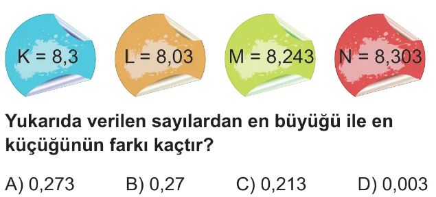6. Sınıf Ondalık Gösterimlerde Toplama ve Çıkarma İşlemi Test 3