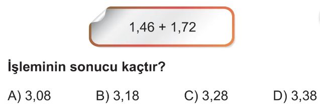 6. Sınıf Ondalık Gösterimlerde Toplama ve Çıkarma İşlemi Test 3