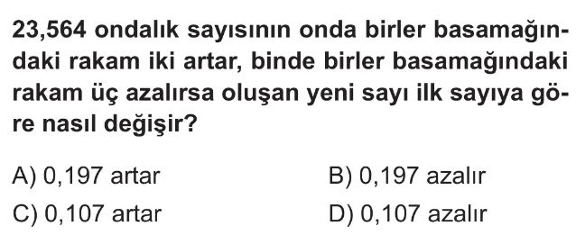 6. Sınıf Ondalık Gösterimlerde Toplama ve Çıkarma İşlemi Test 4