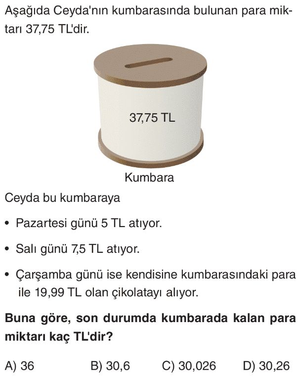 6. Sınıf Ondalık Gösterimlerde Toplama ve Çıkarma İşlemi Test 6