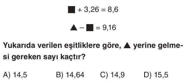 6. Sınıf Ondalık Gösterimlerde Toplama ve Çıkarma İşlemi Test 7