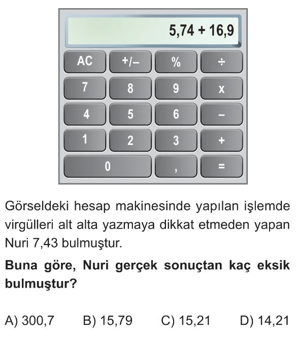 6. Sınıf Ondalık Gösterimlerde Toplama ve Çıkarma İşlemi Test 7