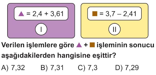 6. Sınıf Ondalık Gösterimlerde Toplama ve Çıkarma İşlemi Test 7