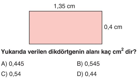 6. Sınıf Ondalık Gösterimlerde Çarpma İşlemi Test 1