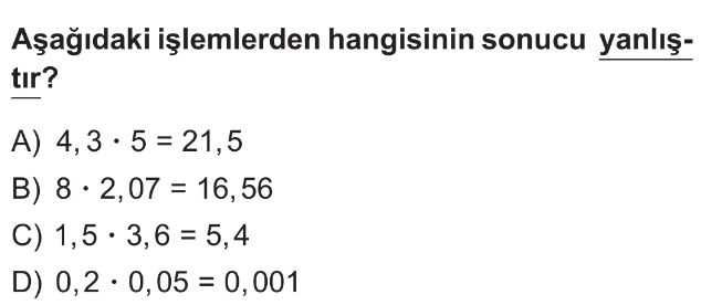 6. Sınıf Ondalık Gösterimlerde Çarpma İşlemi Test 1
