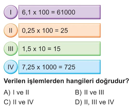 6. Sınıf Ondalık Gösterimlerde Çarpma İşlemi Test 1