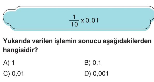 6. Sınıf Ondalık Gösterimlerde Çarpma İşlemi Test 2