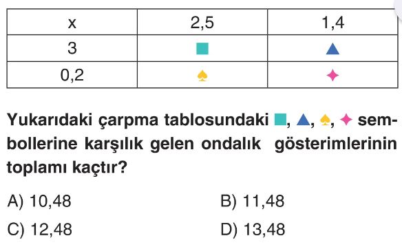 6. Sınıf Ondalık Gösterimlerde Çarpma İşlemi Test 3