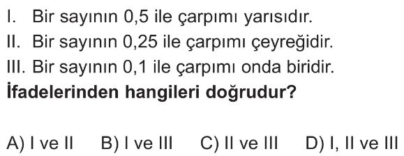 6. Sınıf Ondalık Gösterimlerde Çarpma İşlemi Test 3