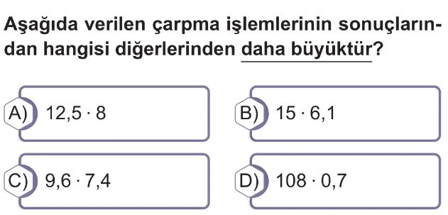 6. Sınıf Ondalık Gösterimlerde Çarpma İşlemi Test 3