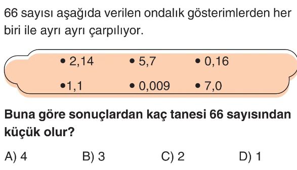 6. Sınıf Ondalık Gösterimlerde Çarpma İşlemi Test 4