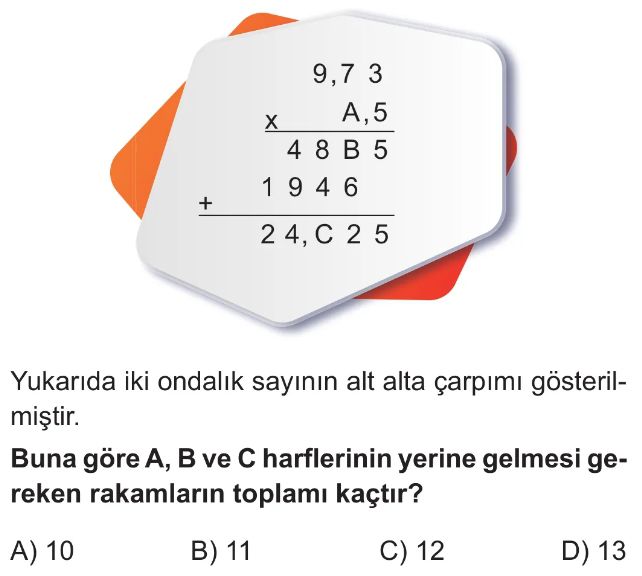 6. Sınıf Ondalık Gösterimlerde Çarpma İşlemi Test 4