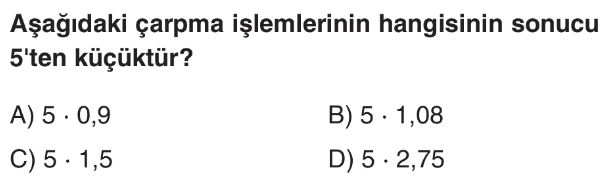 6. Sınıf Ondalık Gösterimlerde Çarpma İşlemi Test 4