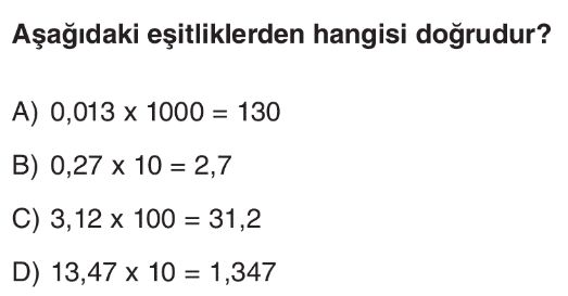 6. Sınıf Ondalık Gösterimlerde Çarpma İşlemi Test 5