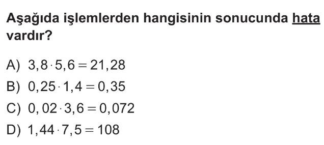 6. Sınıf Ondalık Gösterimlerde Çarpma İşlemi Test 5
