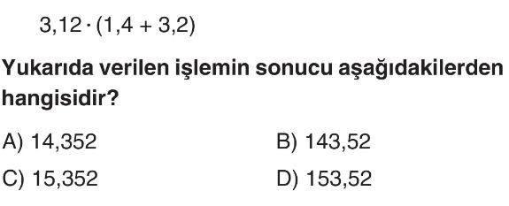 6. Sınıf Ondalık Gösterimlerde Çarpma İşlemi Test 7