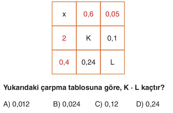 6. Sınıf Ondalık Gösterimlerde Çarpma İşlemi Test 7