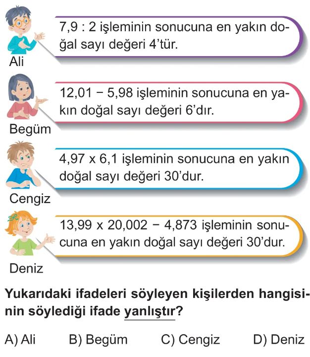 6. Sınıf Ondalık Gösterimleri Kısa Yoldan Çarpma veya Bölme - Sonucu Tahmin Etme Test 2