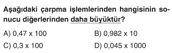 6. Sınıf Ondalık Gösterimleri Kısa Yoldan Çarpma veya Bölme - Sonucu Tahmin Etme Test 3