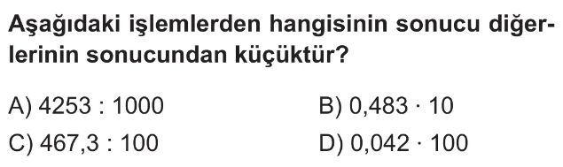 6. Sınıf Ondalık Gösterimleri Kısa Yoldan Çarpma veya Bölme - Sonucu Tahmin Etme Test 4