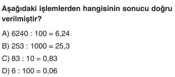 6. Sınıf Ondalık Gösterimleri Kısa Yoldan Çarpma veya Bölme - Sonucu Tahmin Etme Test 4