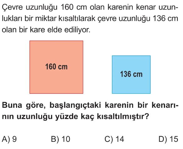 6. Sınıf Bir Çokluğun Yüzdesi ve Yüzde Problemleri Test 1