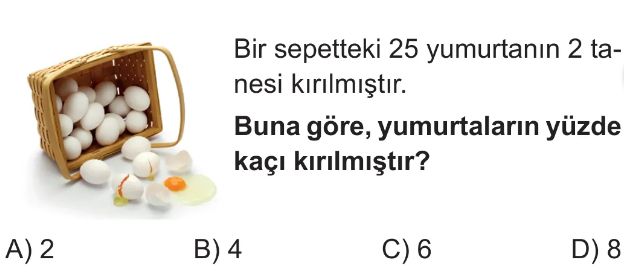 6. Sınıf Bir Çokluğun Yüzdesi ve Yüzde Problemleri Test 2