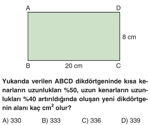 6. Sınıf Bir Çokluğun Yüzdesi ve Yüzde Problemleri Test 3