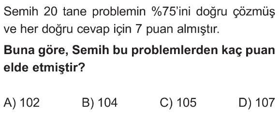 6. Sınıf Bir Çokluğun Yüzdesi ve Yüzde Problemleri Test 3