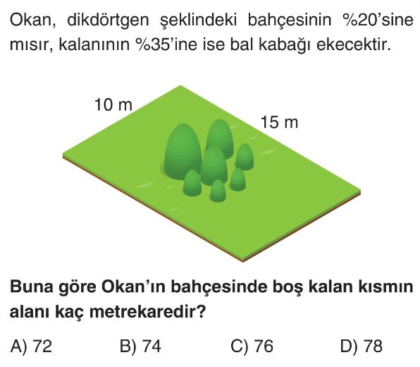 6. Sınıf Bir Çokluğun Yüzdesi ve Yüzde Problemleri Test 3