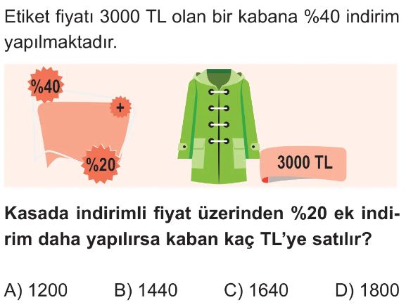 6. Sınıf Bir Çokluğun Yüzdesi ve Yüzde Problemleri Test 3