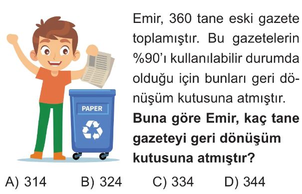 6. Sınıf Bir Çokluğun Yüzdesi ve Yüzde Problemleri Test 3