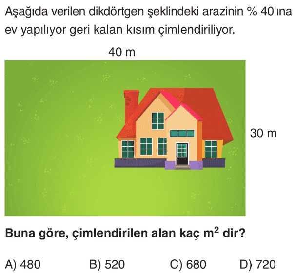 6. Sınıf Bir Çokluğun Yüzdesi ve Yüzde Problemleri Test 4