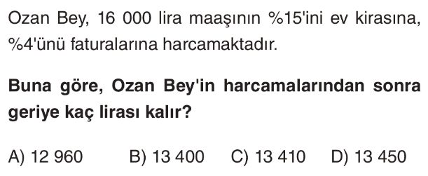 6. Sınıf Bir Çokluğun Yüzdesi ve Yüzde Problemleri Test 5