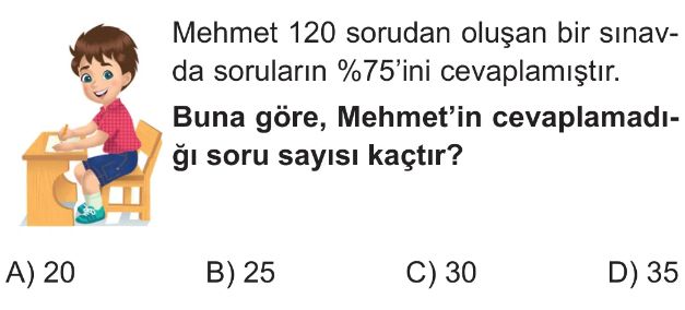 6. Sınıf Bir Çokluğun Yüzdesi ve Yüzde Problemleri Test 5