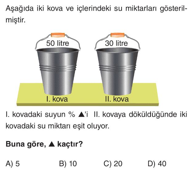 6. Sınıf Bir Çokluğun Yüzdesi ve Yüzde Problemleri Test 6