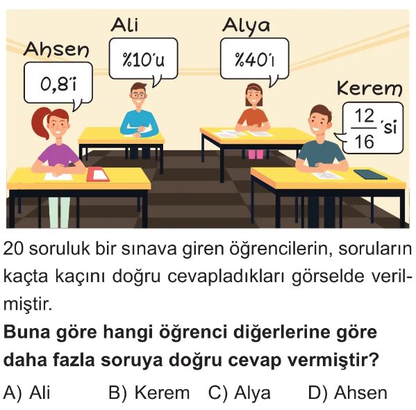 6. Sınıf Bir Çokluğun Yüzdesi ve Yüzde Problemleri Test 6