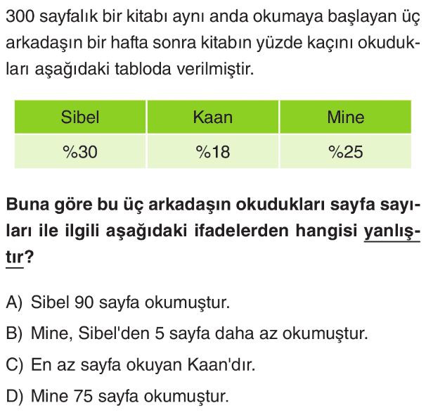 6. Sınıf Bir Çokluğun Yüzdesi ve Yüzde Problemleri Test 7