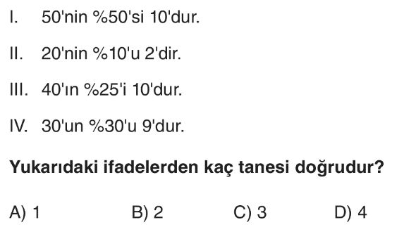 6. Sınıf Bir Çokluğun Yüzdesi ve Yüzde Problemleri Test 7
