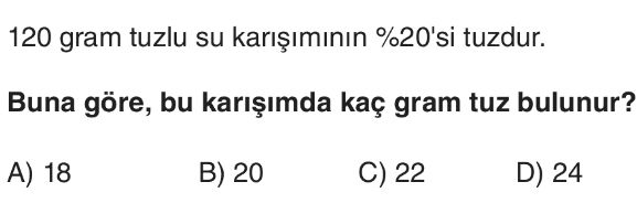 6. Sınıf Bir Çokluğun Yüzdesi ve Yüzde Problemleri Test 8