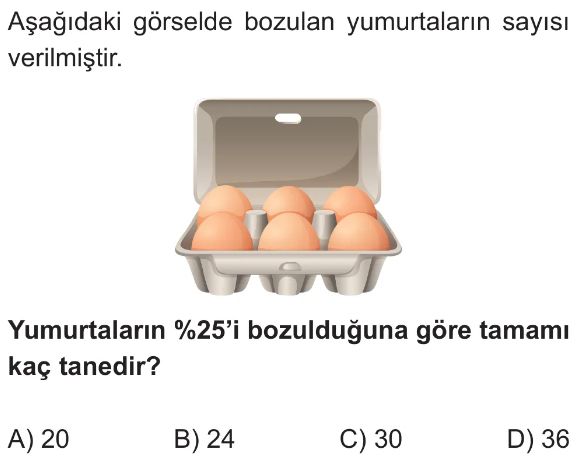 6. Sınıf Bir Çokluğun Yüzdesi ve Yüzde Problemleri Test 9
