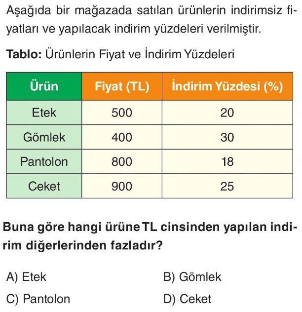 6. Sınıf Bir Çokluğun Yüzdesi ve Yüzde Problemleri Test 9